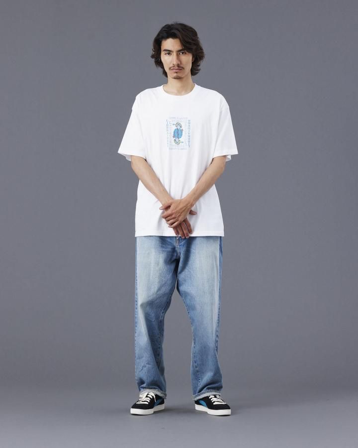 Tシャツには全体を起毛させ、色を退色させるパウダーフロスト加工を施しており、肌触りが良くヴィンテージライクな仕上がりになっています。