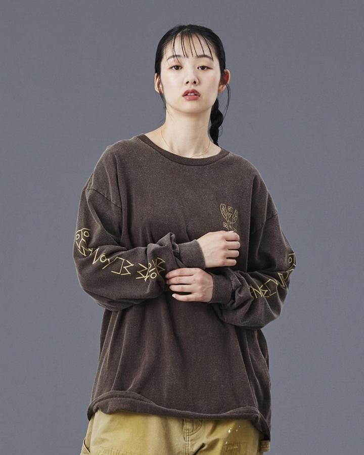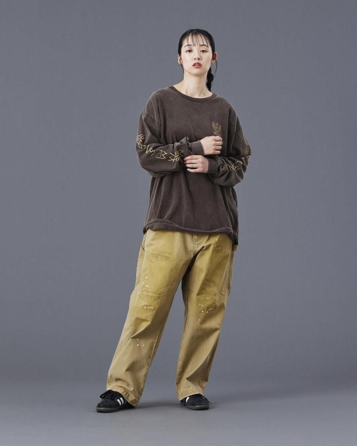 全体を起毛させ、色を退色させるパウダーフロスト加工を施しており、肌触りが良くヴィンテージライクな仕上がりになっています。
