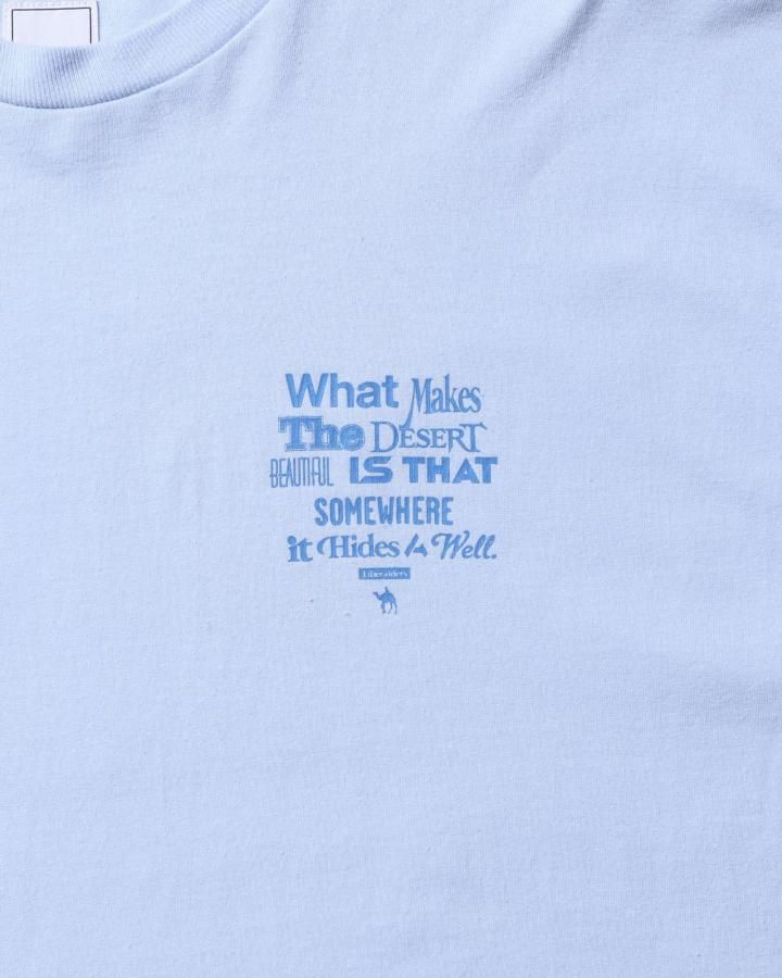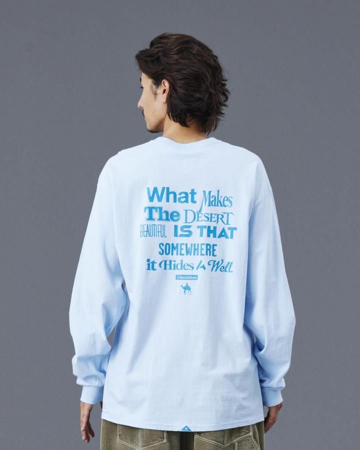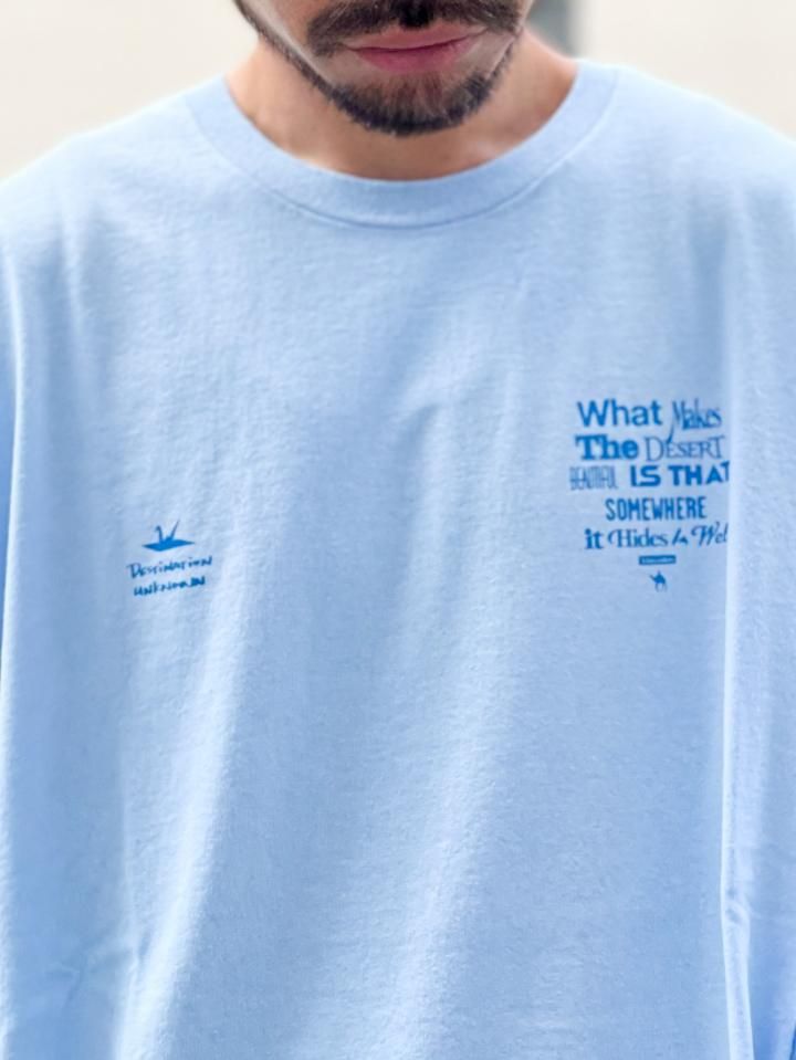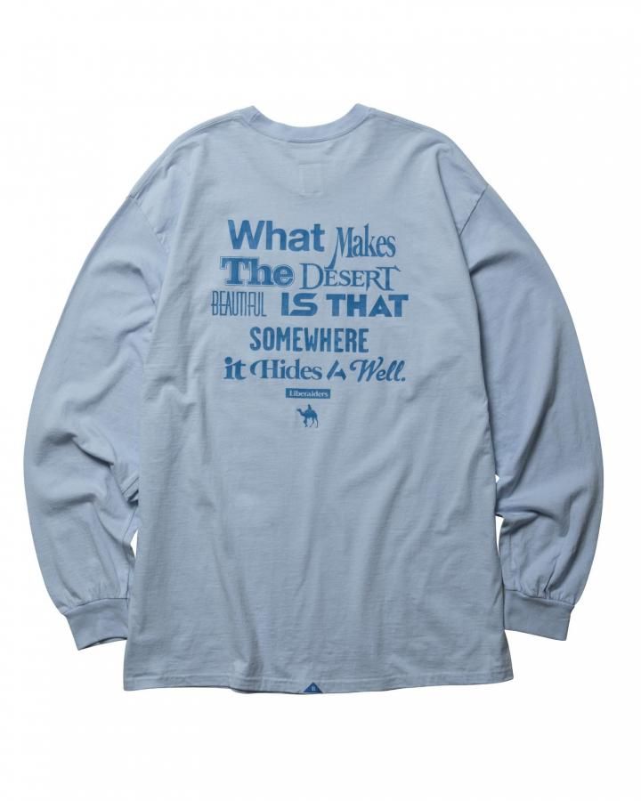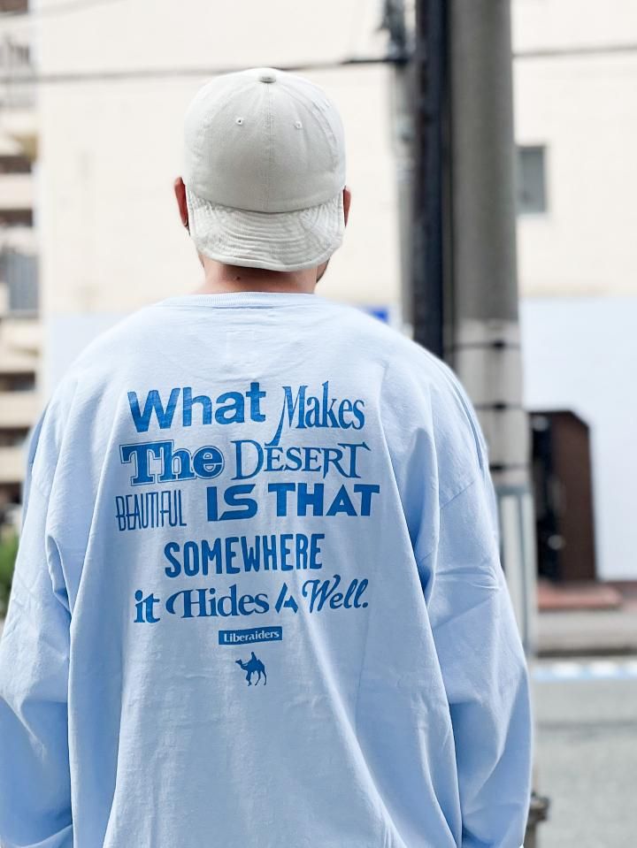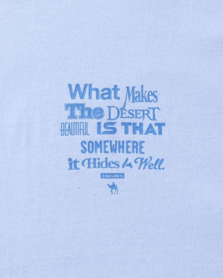 フランスの作家 アントワーヌ・ド・サン=テグジュペリ の言葉『What makes the desert beautiful is that somewhere it hides a well.』〜どこかに泉が隠れているということが、砂漠を美しくする〜 というメッセージ性のあるプリントが特徴です。