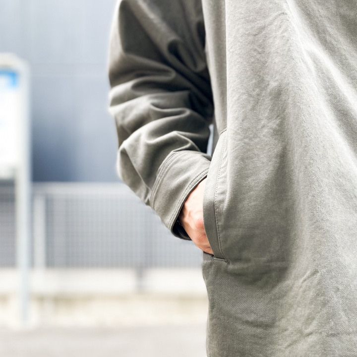 こちらは "グリストーン加工” を施した TWILL 生地を使用して製作。