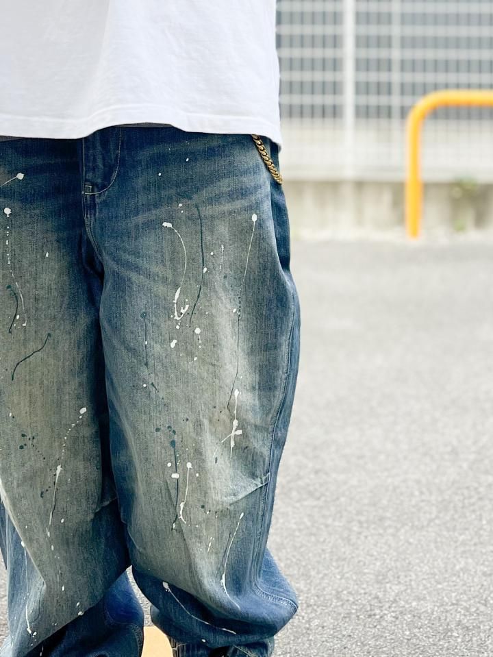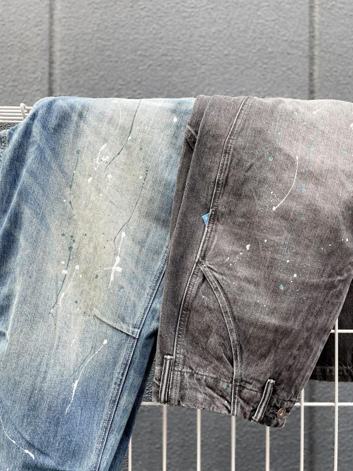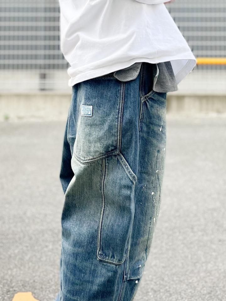 ポケット周り、ベルトループにはロープを入れて補強、全体にペンキ加工を施したリアルな加工感のルックスに仕上げました。