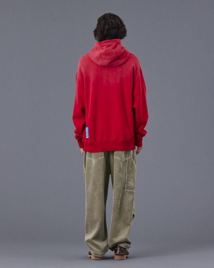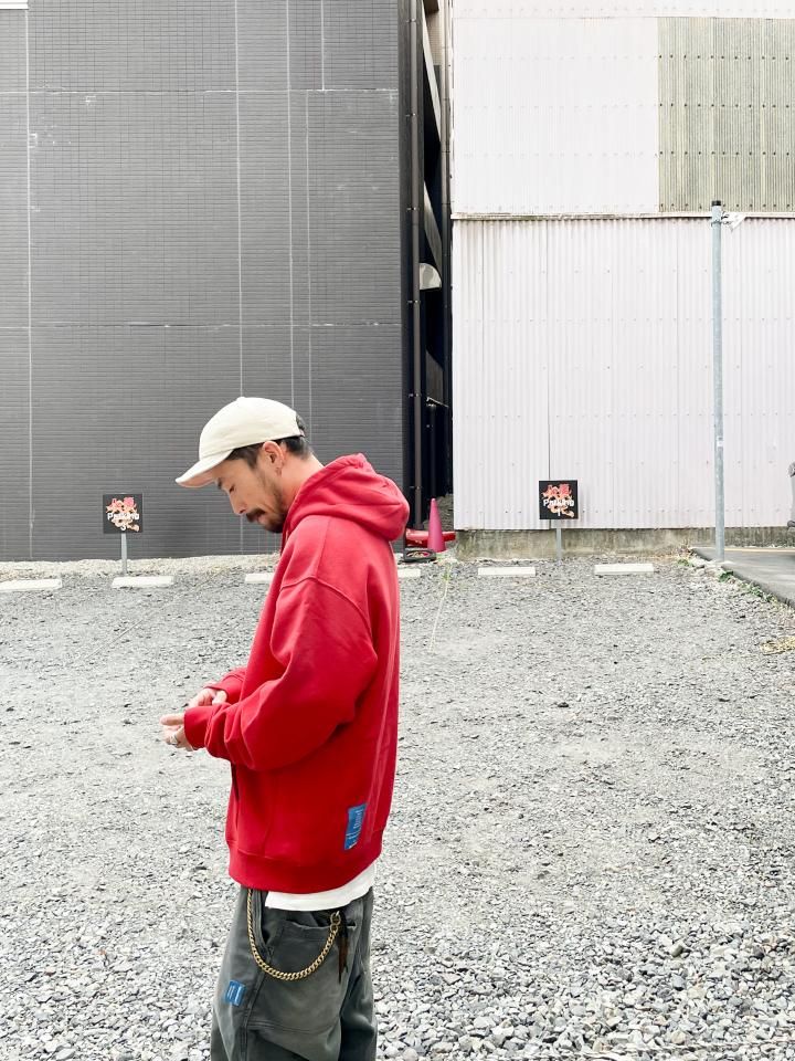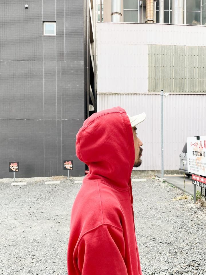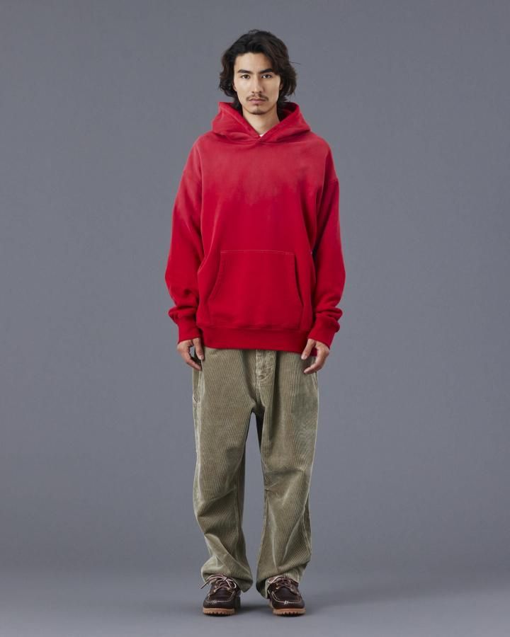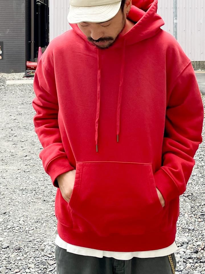 ヘビーウェイトな度詰めの裏毛の定番プルオーバーフーディ。