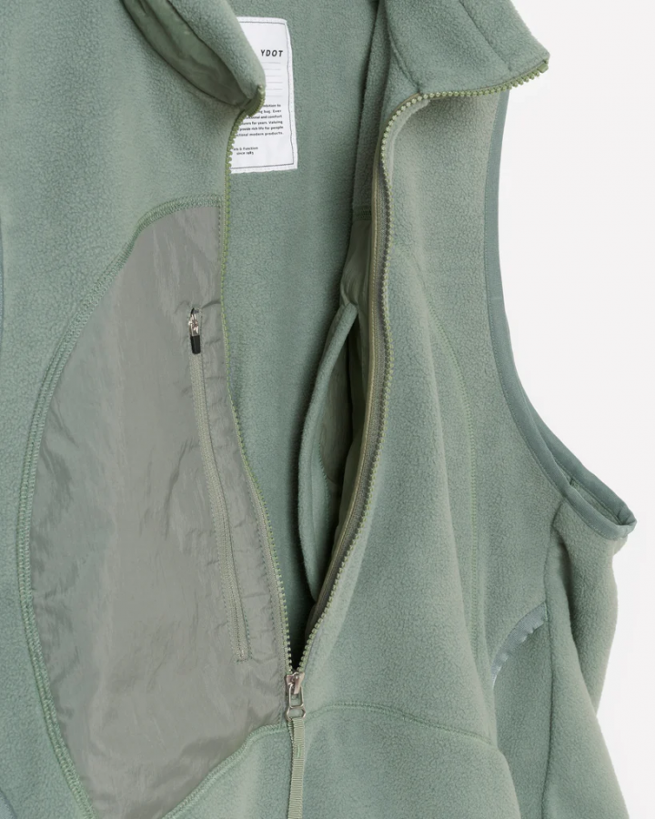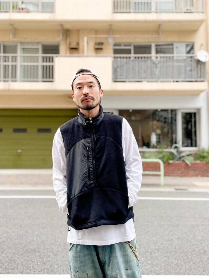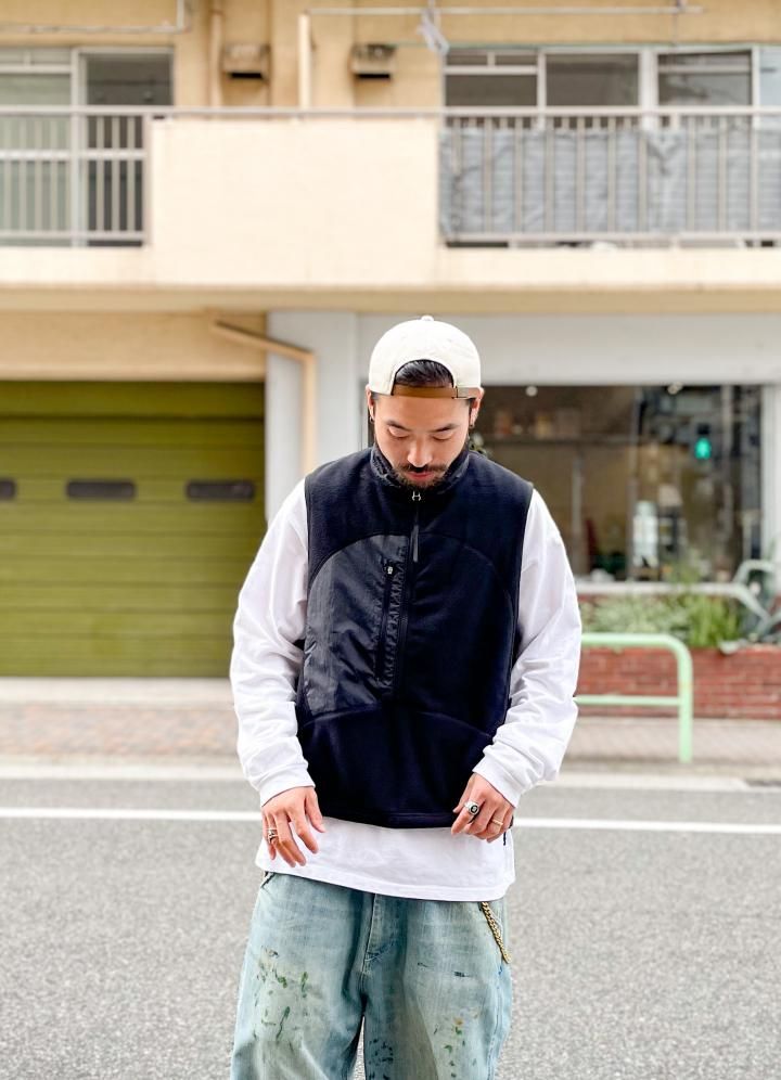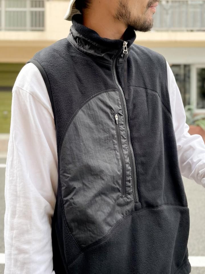 CIRCLE 状のポケットが特徴の FLEECE VEST 。