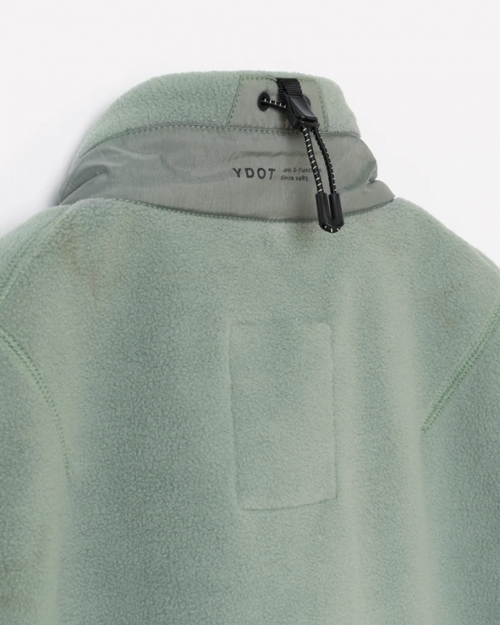 両面起毛の肌触りの良い FLEECE と、シワ加工を施した NYLON TAFFETA の切り替えがアクセントになっています。