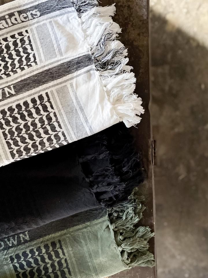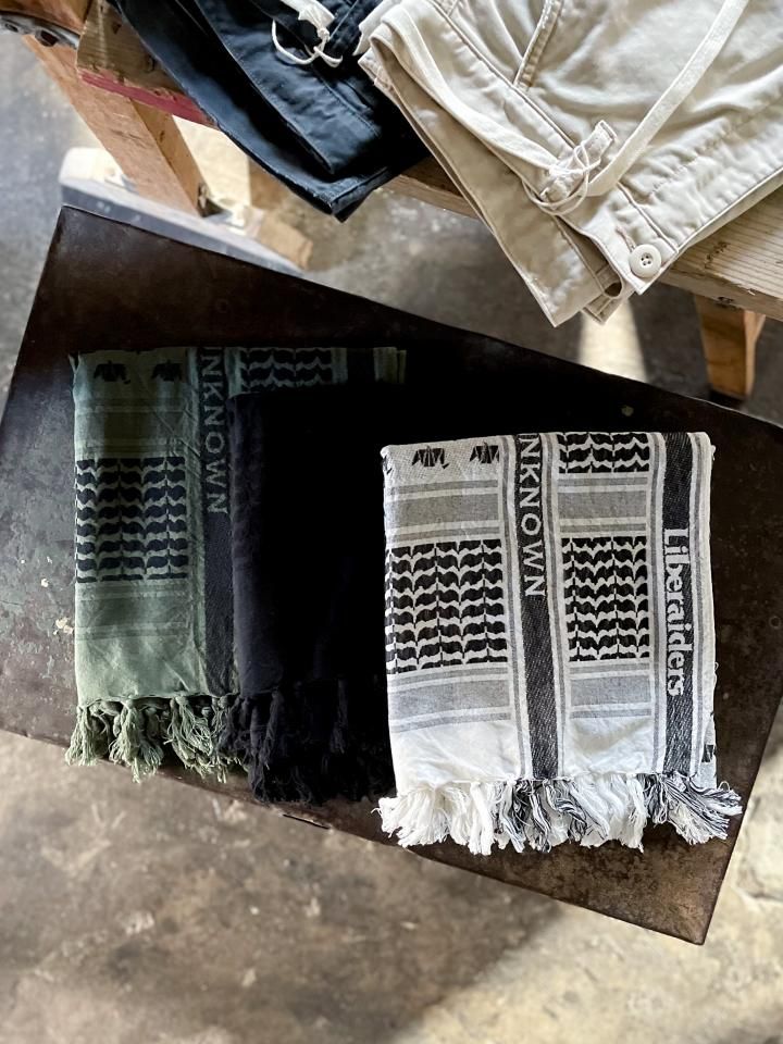 昨今、アウトドアや登山の携行品としても注目されているアフガンストールをよりボリューム感を出す為に大きく変更 (一般的なシュマグは1m 四方。 Liberaiders®︎ は1.2m 四方) 。