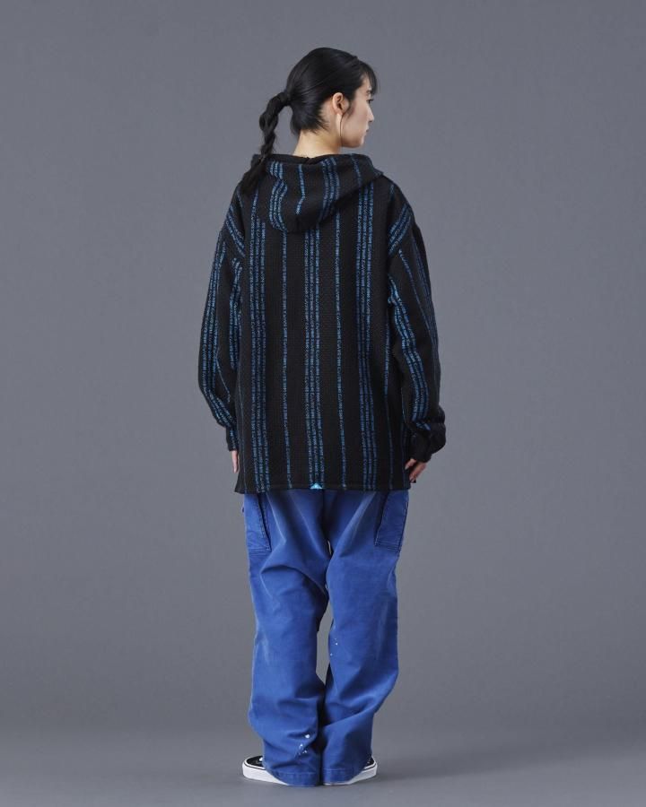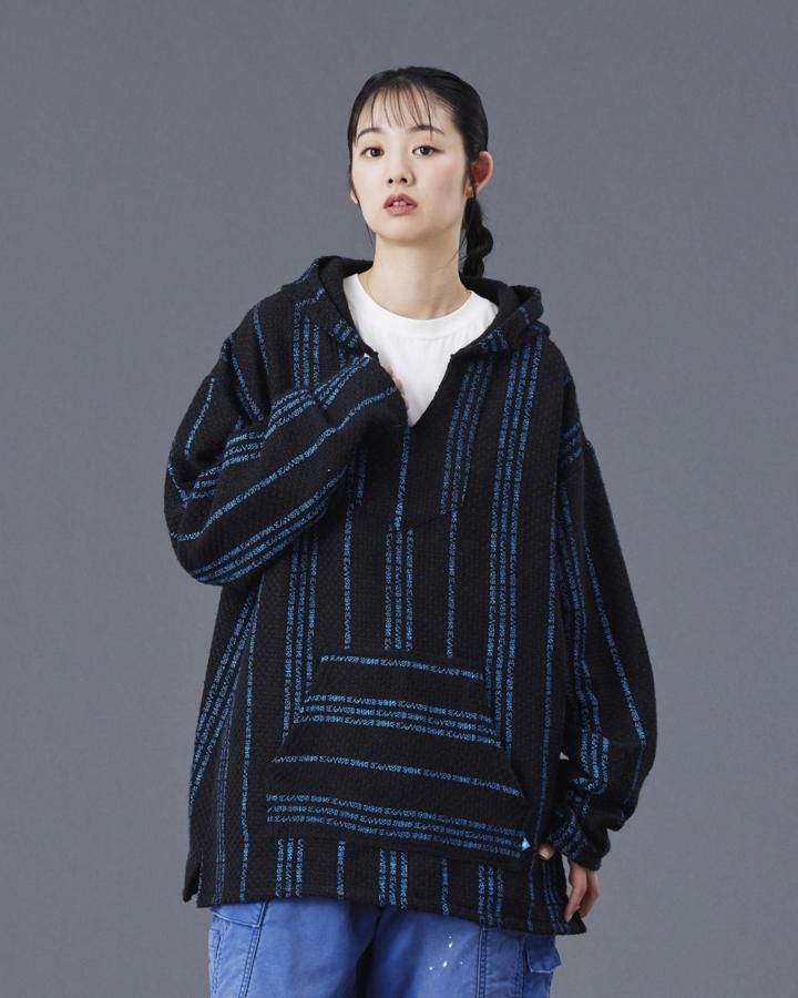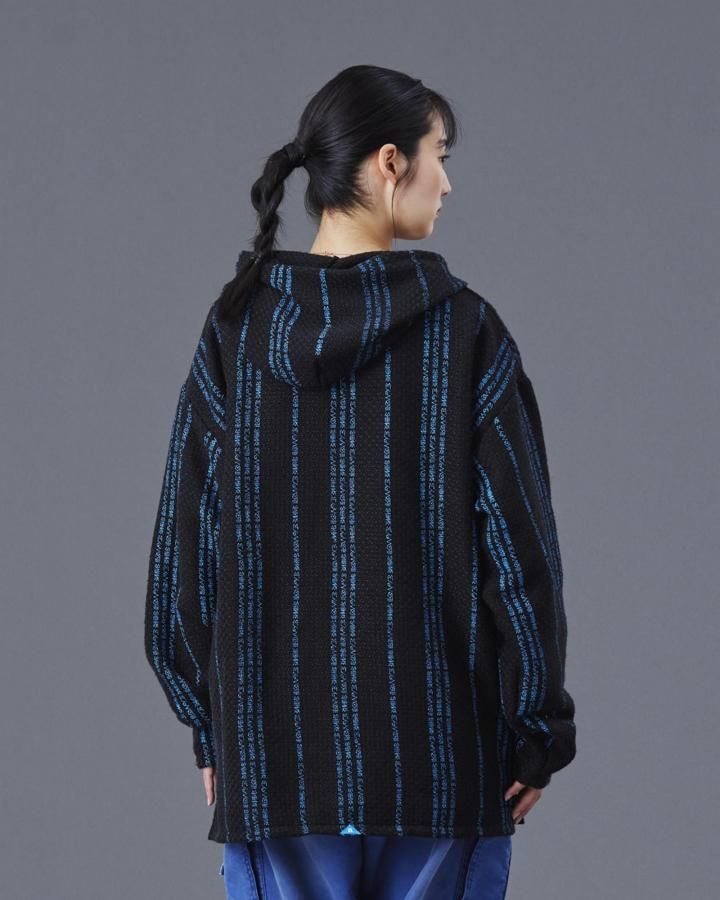 ザックリと織られた生地に総柄のプリントが施されたストライプのバハシャツ。