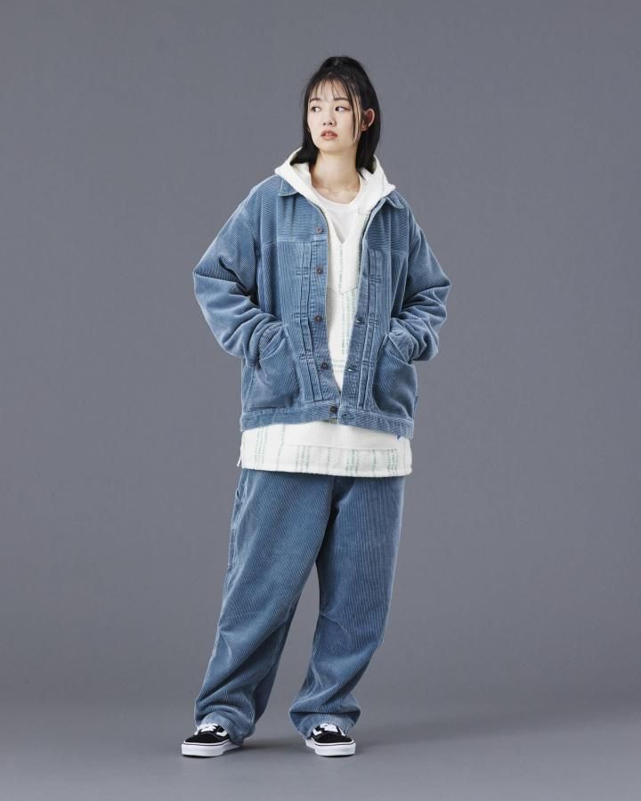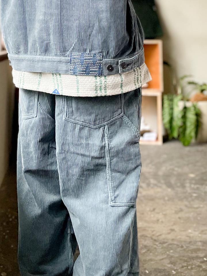 8W の地厚なコーデュロイ生地を製品染で仕上げたサルエルペインターパンツ。