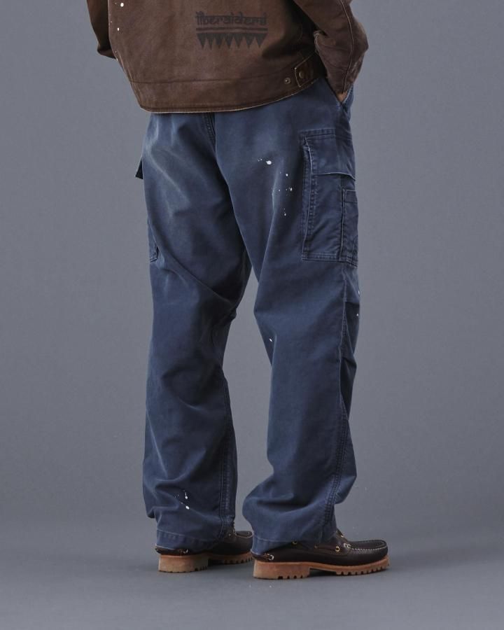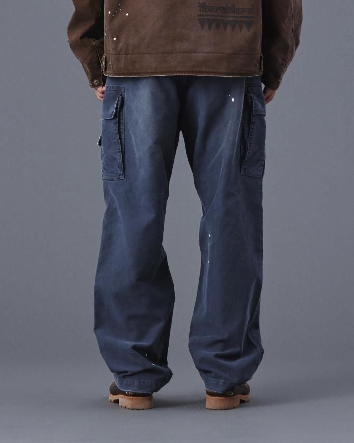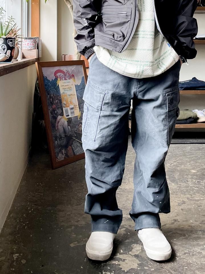 もともと軍物で多用される MOLE SKIN PANTS を加工により、どこか懐かしく、ストリート感を感じさせる一本に仕上げています。